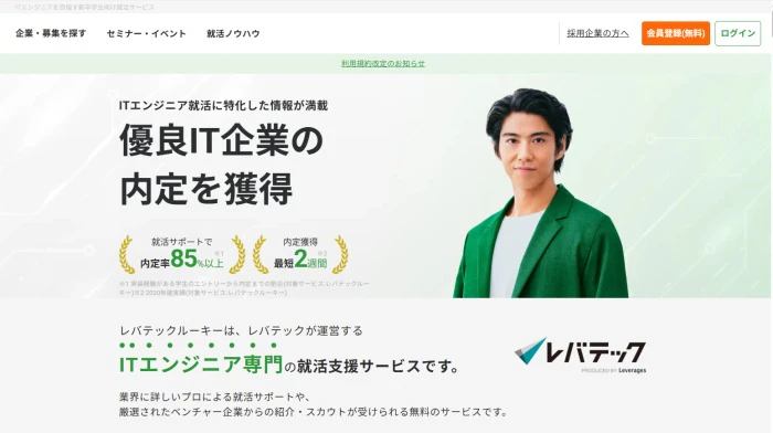 「レバテックルーキー」は、ITエンジニア専門の新卒者向け就職支援サービスです。