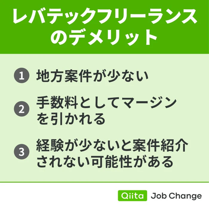 ここでは、レバテックフリーランスの3つのデメリットを紹介します。