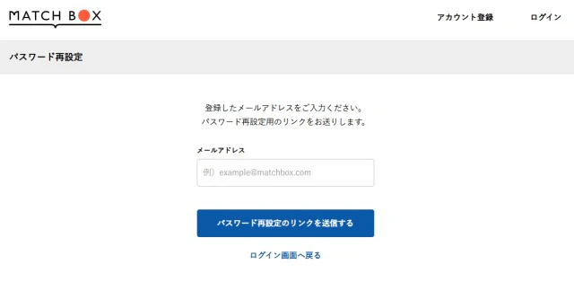 登録時のメールアドレスを入力し、「パスワード再設定のリンクを送信する」という青いボタンを押すと、メールにパスワード再設定用のリンクが送られてくるので、そこから手順に従って操作していきましょう。